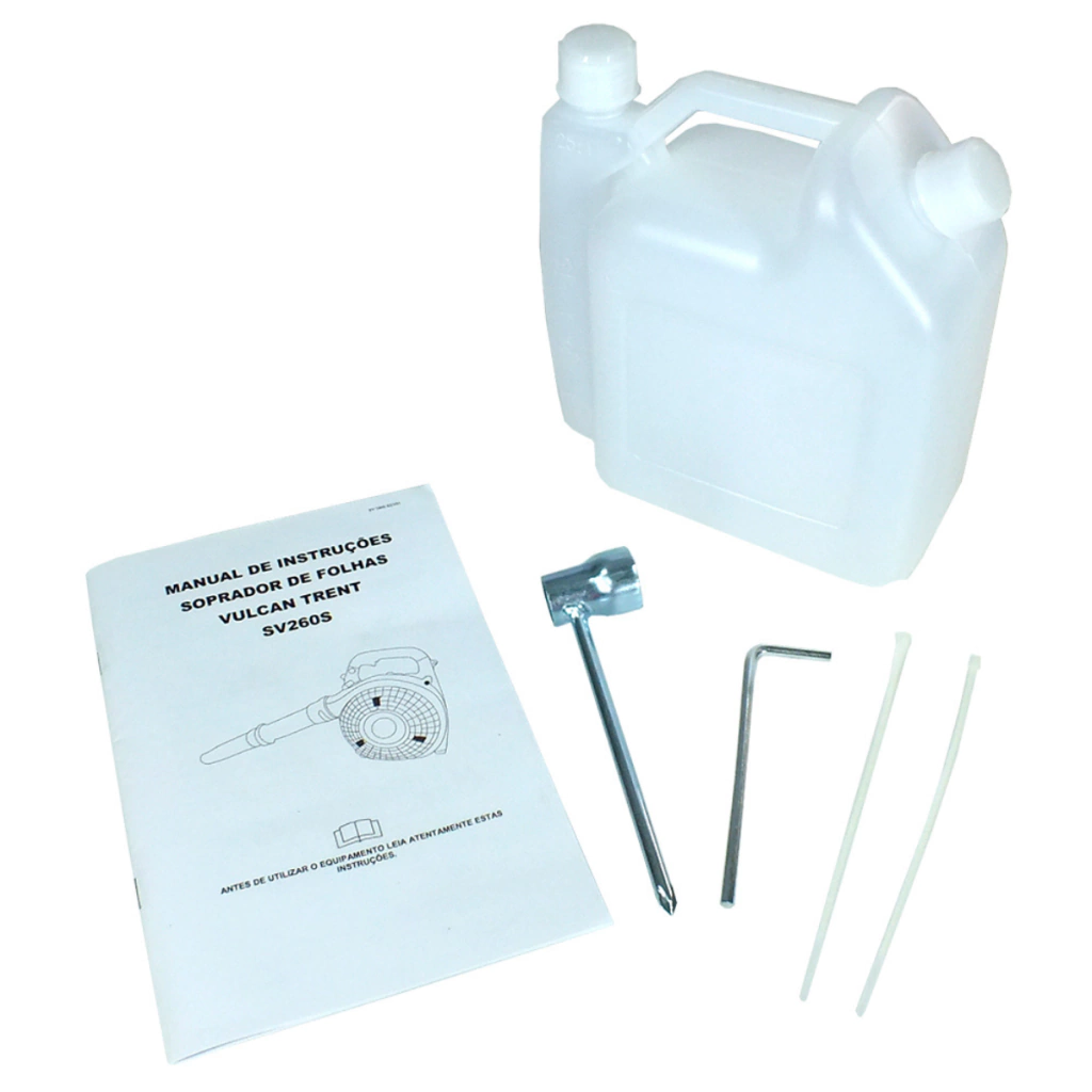 Incluso: 1 Motor do Soprador com Duto Reto 70mm x 320mm , 1 Duto Reto 70mm x 280mm, 1 Chave de Vela, 1 Dosador de Combustível, 1 Chave Allen, 1 Parafuso Phillips 5 x 12mm com arruela lisa e pressão e 1 Manual do Produto.
